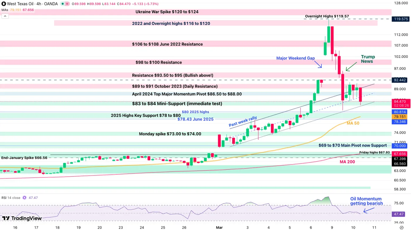 WTI Oil 4H Chart – March 10, 2026. Source: TradingView
