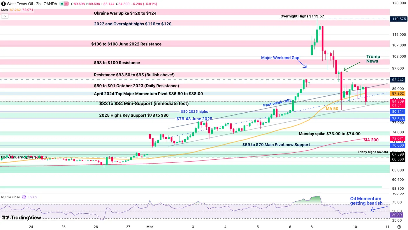 WTI Oil 2H Chart – March 10, 2026. Source: TradingView