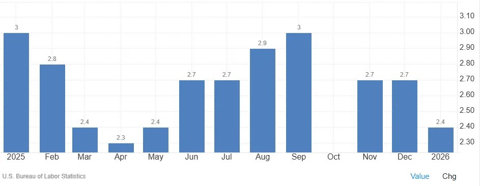 Looking back at the inflation release last month, it was a positive one for rate cuts. YoY inflation in the US dropped to its lowest level since May 2025, 2.4%.
