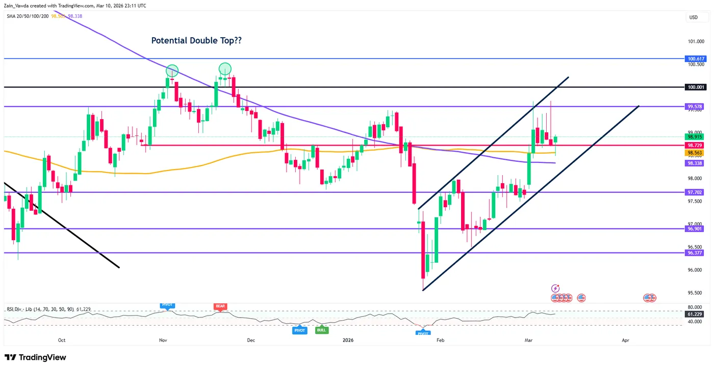 US Dollar Index Daily Chart, March 10, 2026