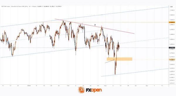 As the S&P 500 chart (US SPX 500 mini on FXOpen) shows, the index is trading near the 6,800 level this morning. However, the balance between supply and demand could change significantly after the release of the Consumer Price Index (CPI) report scheduled for 15:30 GMT+3.