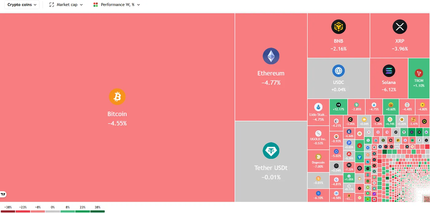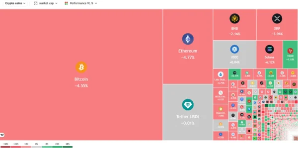 Bitcoin is down around 4.58% this week with red being the dominant color on the crypto heatmap. It shouldn’t be a surprise as the general market feeling is still one of unease as haven demand remains strong. The US dollar has benefitted from this which adds further headwinds for Bitcoins recovery.