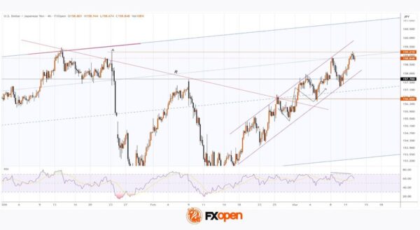 The USD/JPY chart shows a bullish trend at the start of March, influenced by the escalation of military activity in the Middle East.