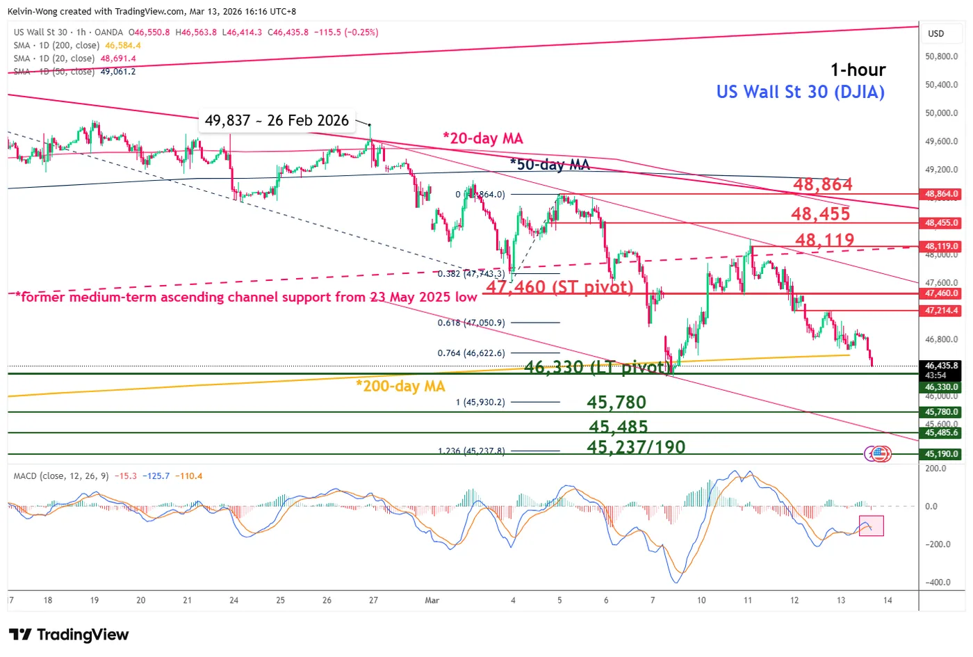 On the other hand, a clearance and an hourly close above 47,460 negates the bearish tone for a squeeze up to retest the next intermediate resistance at 48,119 (also the pull-back of the former medium-term ascending channel support from 23 May 2025 low).