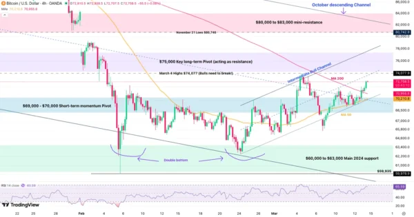 Bitcoin (BTC) 4H Chart, March 13, 2026 – Source: TradingView