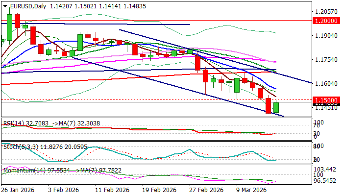 The Euro bounced from new multi-month low (1.1410) on Monday as traders collect profits from strong fall in past two weeks (the pair was down 3%).