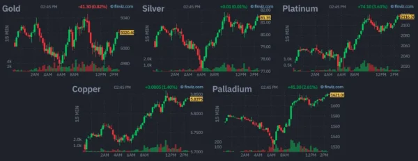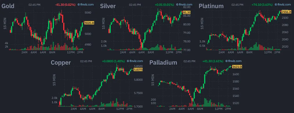 Current Session in Metals (15:05 ET) – Courtesy of Finviz. March 16, 2026