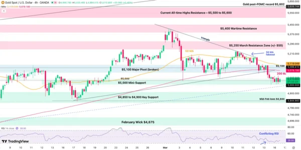 Gold 4H Chart. March 16, 2026. Source: TradingView