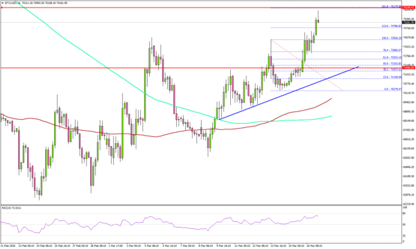 Bitcoin price remained supported above $68,500 against the US Dollar. BTC climbed above $72,000 and $73,200 to enter a positive zone.
