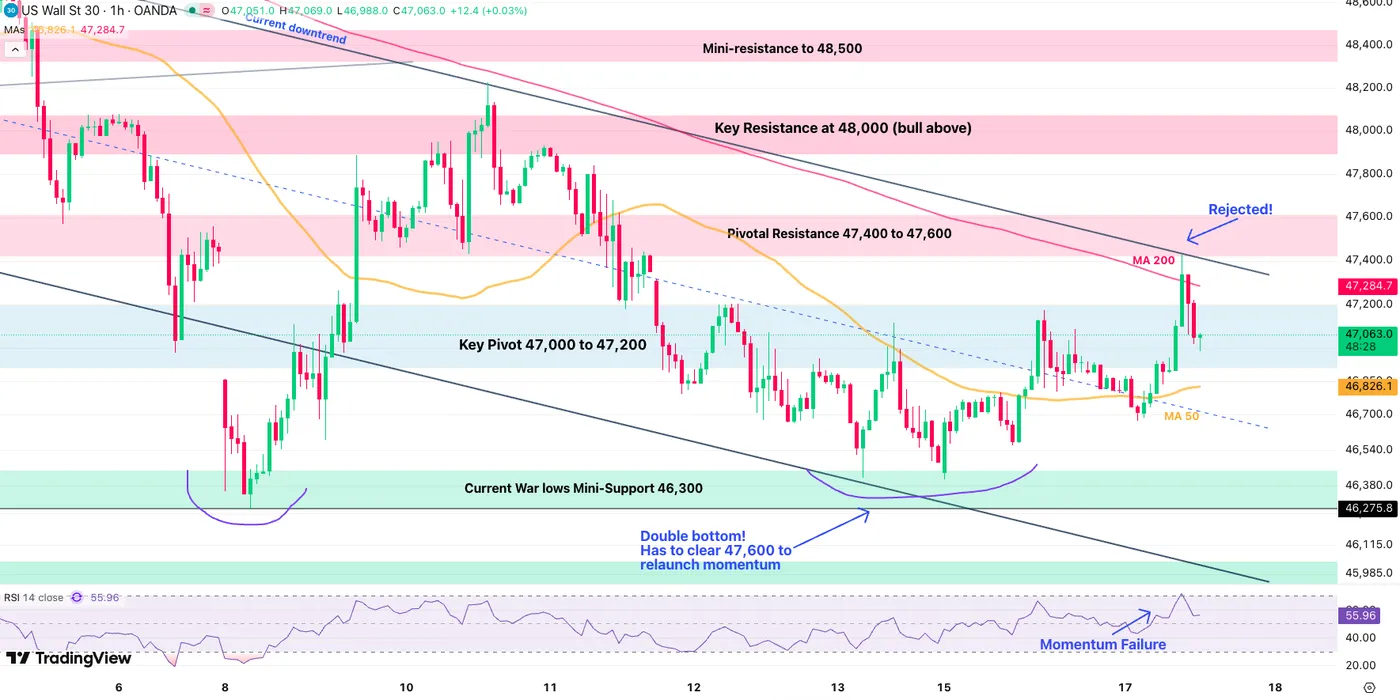 Dow Jones (CFD) 1H Chart – March 17, 2026 – Source: TradingView