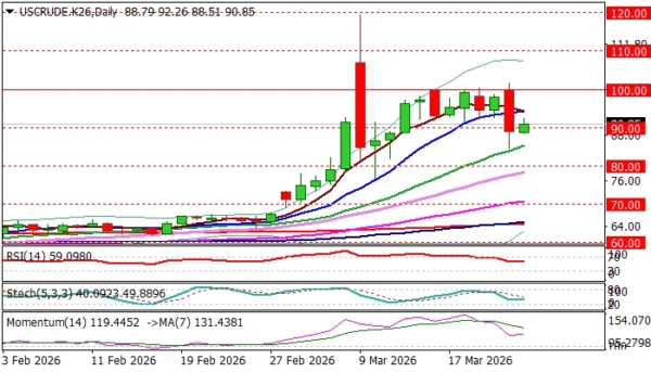 However, fresh escalation of the conflict fuels supply fears despite temporary relief, provided by Monday’s sharp drop that pushed the price away from $100 breakpoint and keeps in play hopes for stronger recovery.