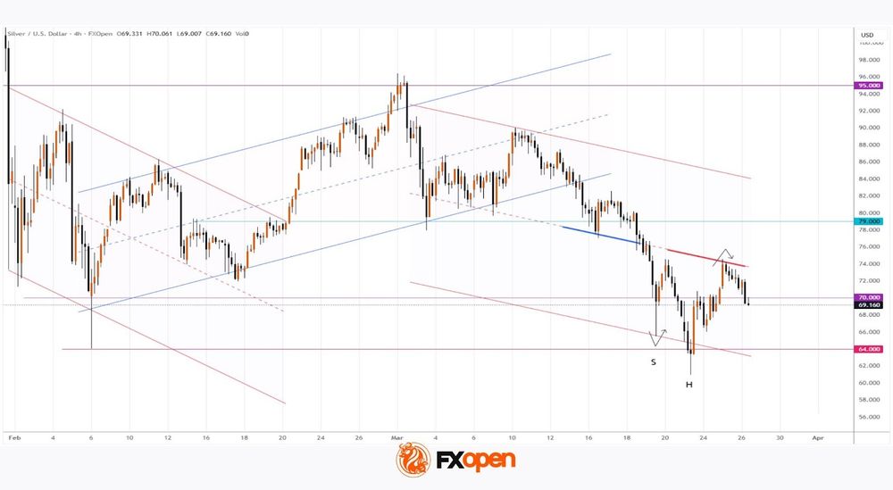 As can be observed on the XAG/USD chart, the price of silver has once again dropped below the psychological $70 level. At the same time, this week has been marked by sharp fluctuations: on Monday, prices traded below $65, while as recently as yesterday, silver reached $74 per ounce.
