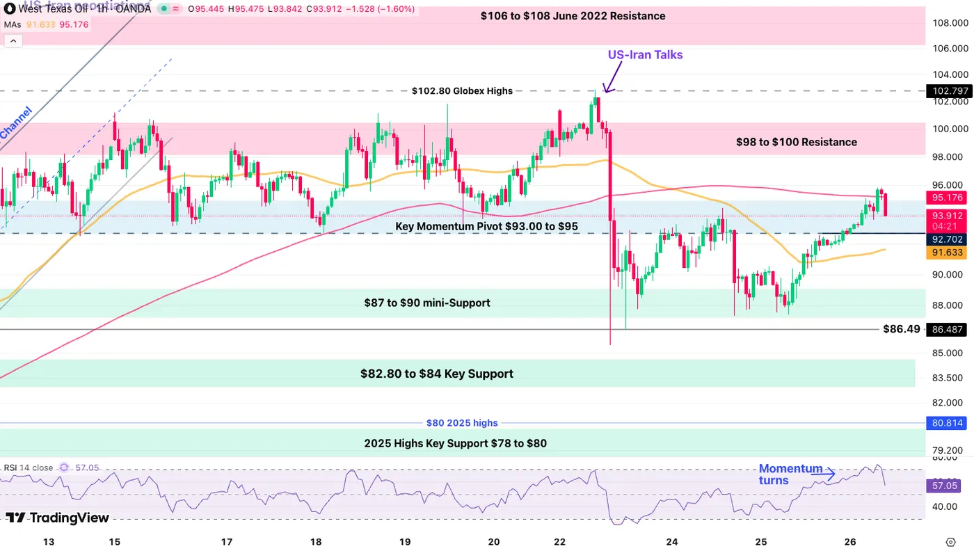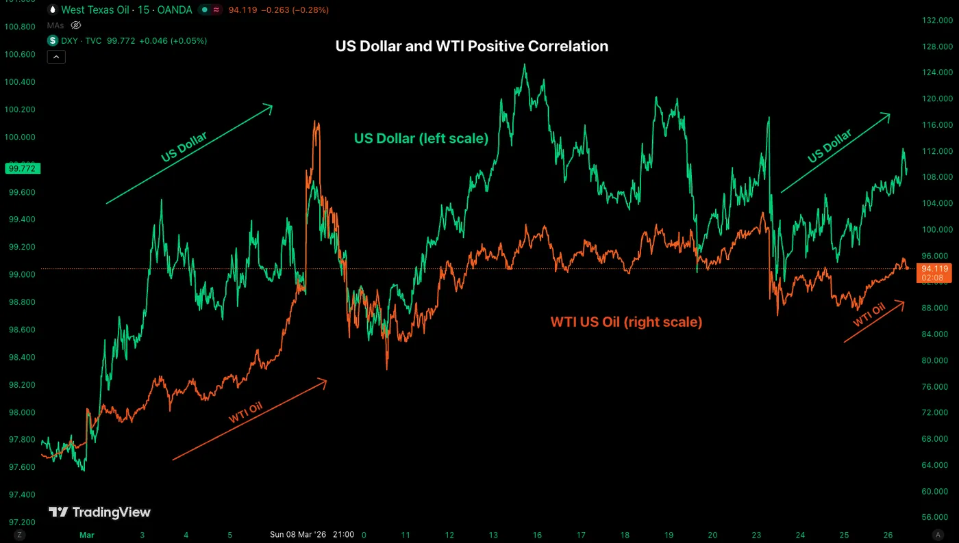 WTI (US) Oil 1H Chart – March 26, 2026. Source: TradingView