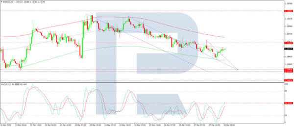 On the H1 chart, the market is forming the structure of the next downward wave towards 1.1440. After reaching this level, a rebound to 1.1535 is expected, potentially extending the move to 1.1647. Technically, this scenario is confirmed by the Stochastic oscillator – its signal line is below 50 and pointing firmly downwards towards 20.