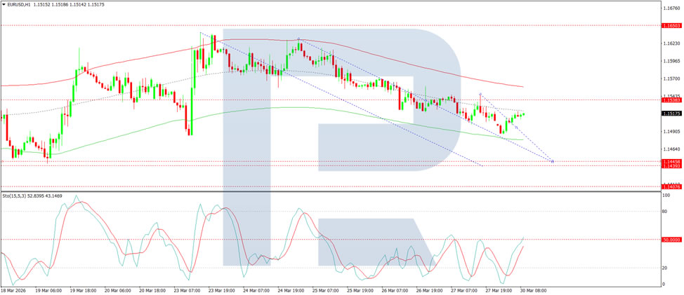 EUR/USD edged higher on Monday after earlier declines, reaching 1.1516. The US dollar continues to draw support from safe-haven demand amid the ongoing Middle East conflict, which has now entered its fifth week with no signs of resolution.