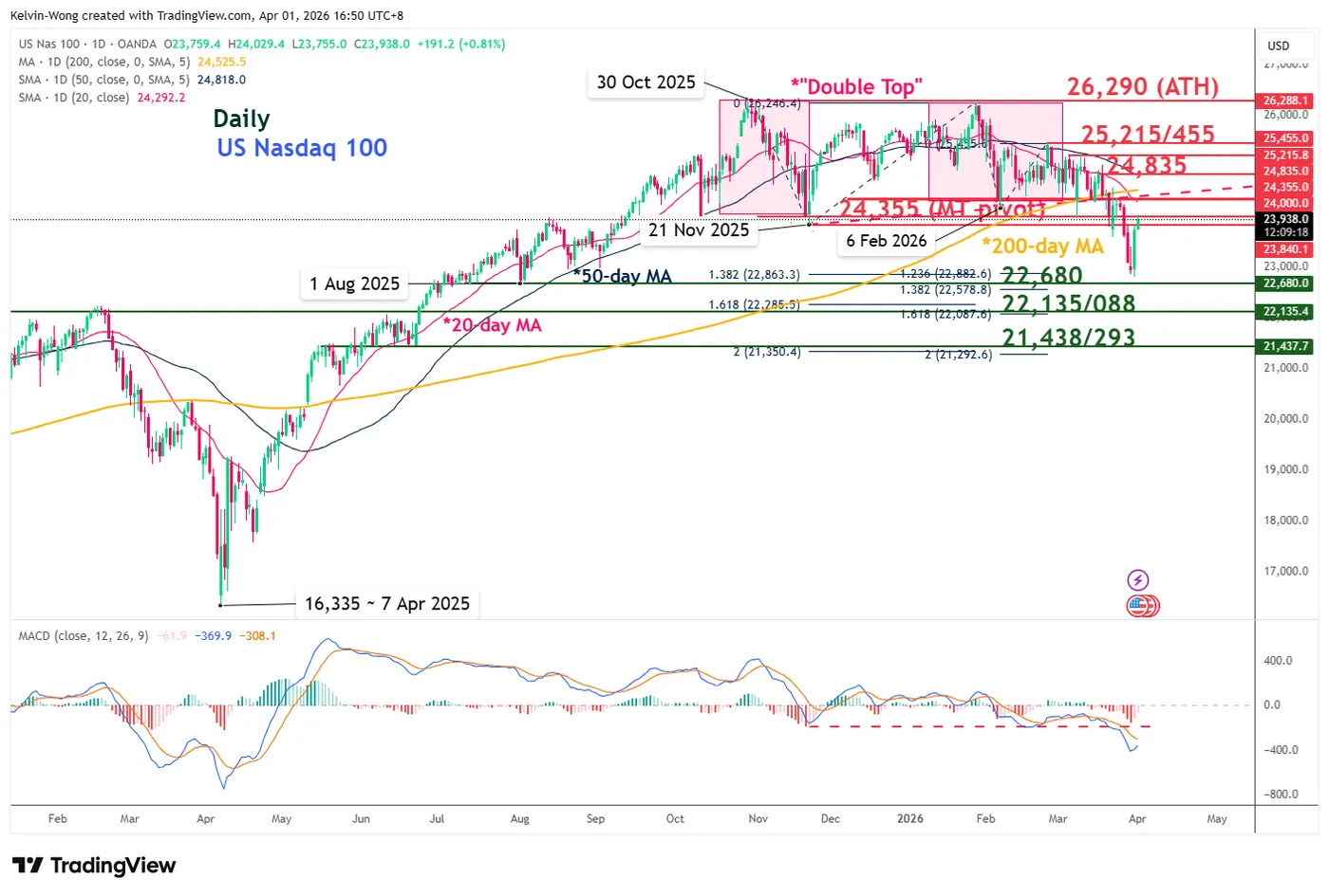 Fig. 6: US Nasdaq 100 CFD index medium-term trend as of 1 Apr 2026 (Source: TradingView)