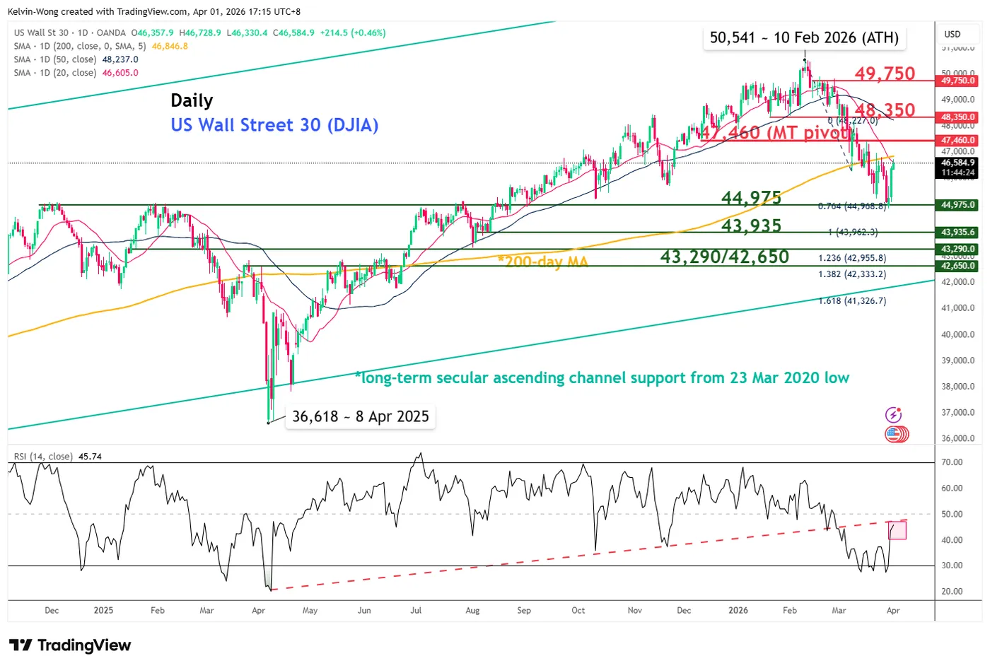Fig. 7: US Wall Street 30 CFD index medium-term trend as of 1 Apr 2026 (Source: TradingView)