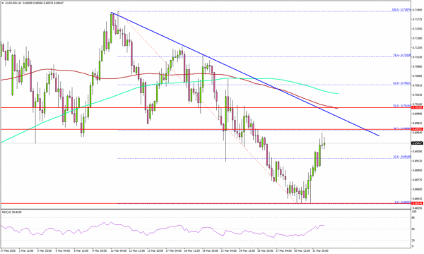 - AUD/USD started a recovery wave above 0.6880 and 0.6920.