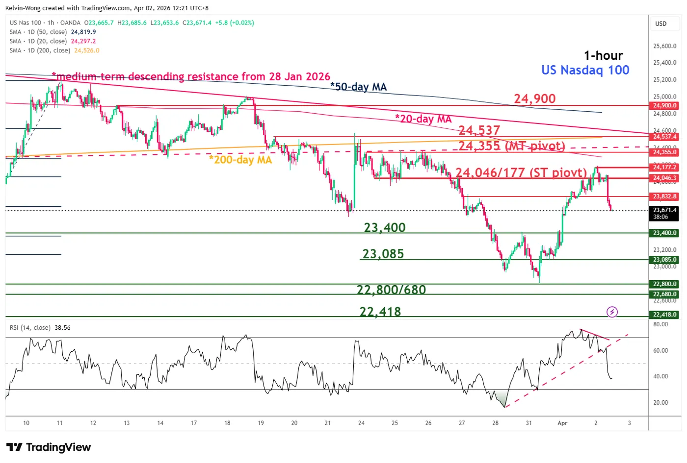 Fig. 2: US Nasdaq 100 CFD index minor trend as of 2 Apr 2026 (Source: TradingView)