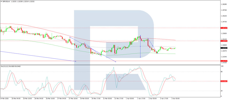 On the H1 chart, the market has formed a compact consolidation range around 1.3254. A downside breakout has initiated a wave structure extending to 1.3100. Should this level be breached, further downside potential towards 1.3050 would emerge. Conversely, an upside breakout from the range may trigger a rebound to 1.3300. Technically, this scenario is confirmed by the Stochastic oscillator, with its signal line below 50 and pointing downwards.