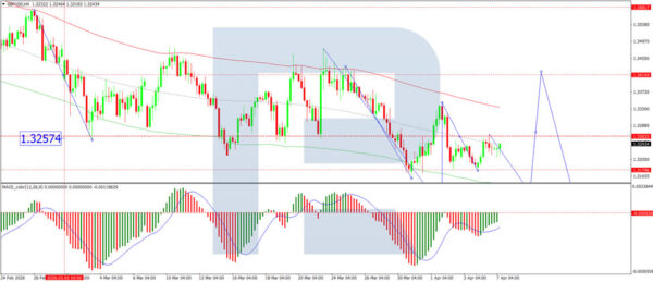 On the H4 GBP/USD chart, the market is forming a broad consolidation range around the 1.3262 level, currently extending down to 1.3180. A move towards 1.3262 is expected in the near term. Following the completion of this correction, a new consolidation range is likely to form. An upside breakout would open the way for a continuation move to 1.3411, while a downside breakout would suggest further movement to 1.3120. Technically, this scenario is confirmed by the MACD indicator, whose signal line is below zero and pointing downwards.