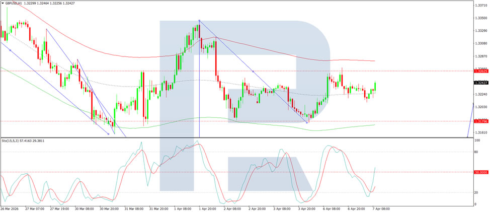 On the H1 chart, the market has formed a compact consolidation range around the 1.3222 level. A downside breakout has initiated a wave structure extending to 1.3120. Should this level be breached, further downside potential towards 1.3050 would emerge. Conversely, an upside breakout from the range could trigger a rebound to 1.3286. Technically, this scenario is confirmed by the Stochastic oscillator, with its signal line below 50 and pointing downwards towards 20.