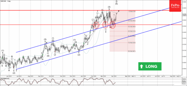 Given the long-term uptrend, AUDCAD can be expected rise to the next resistance level 0.9760 (which stopped earlier waves b and (3)).