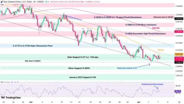 NZD/USD 4H Chart – Source: TradingView. April 7, 2026