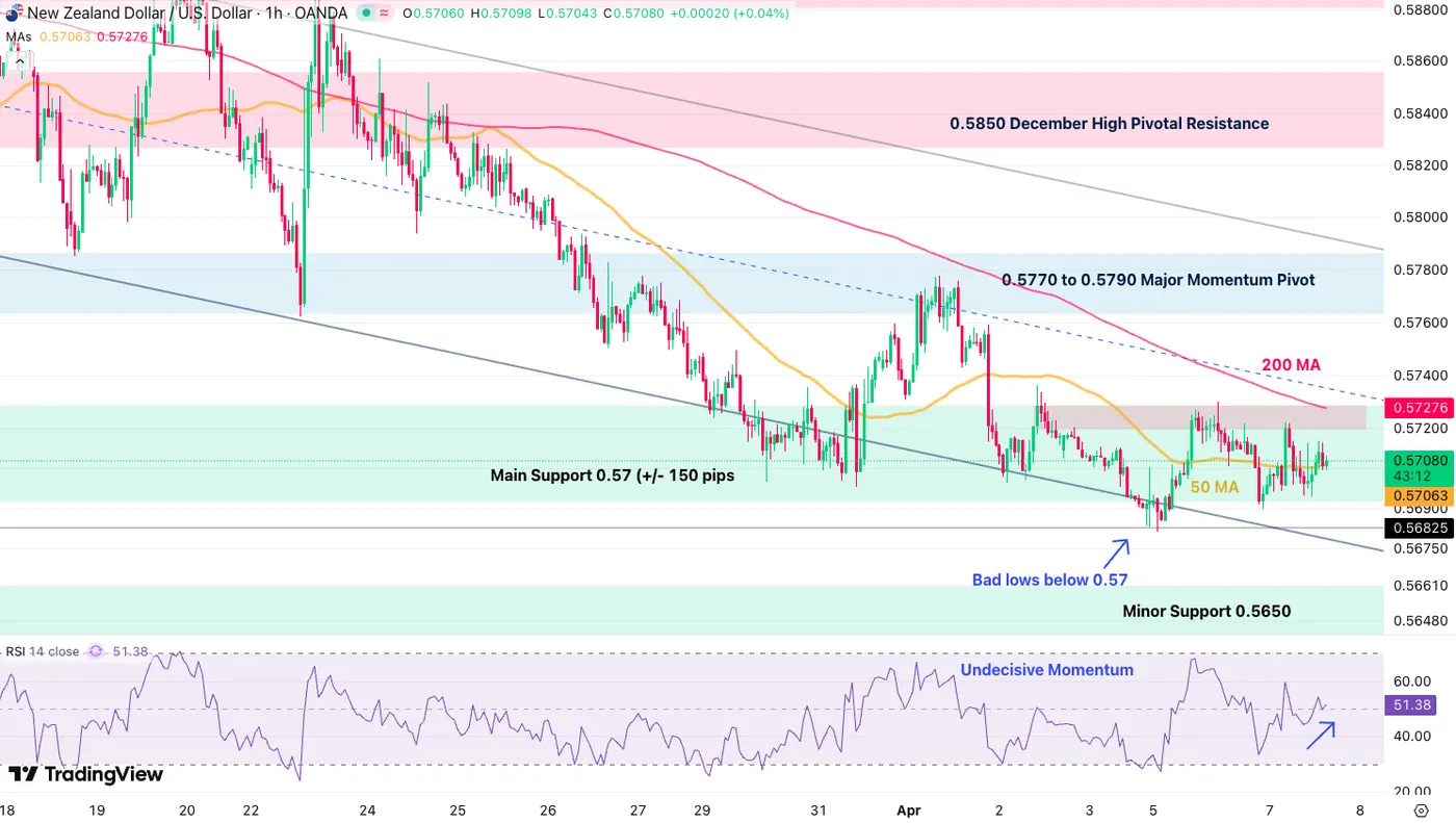 NZD/USD 1H Chart – Source: TradingView. April 7, 2026