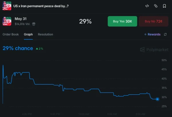 Odds for a proper US-Iran peace deal – Source: Polymarket. April 9, 2026