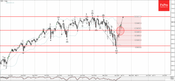 S&P 500 index recently broke the resistance level 6700.00 – which was set as the upward target in our earlier forecast for this index.
