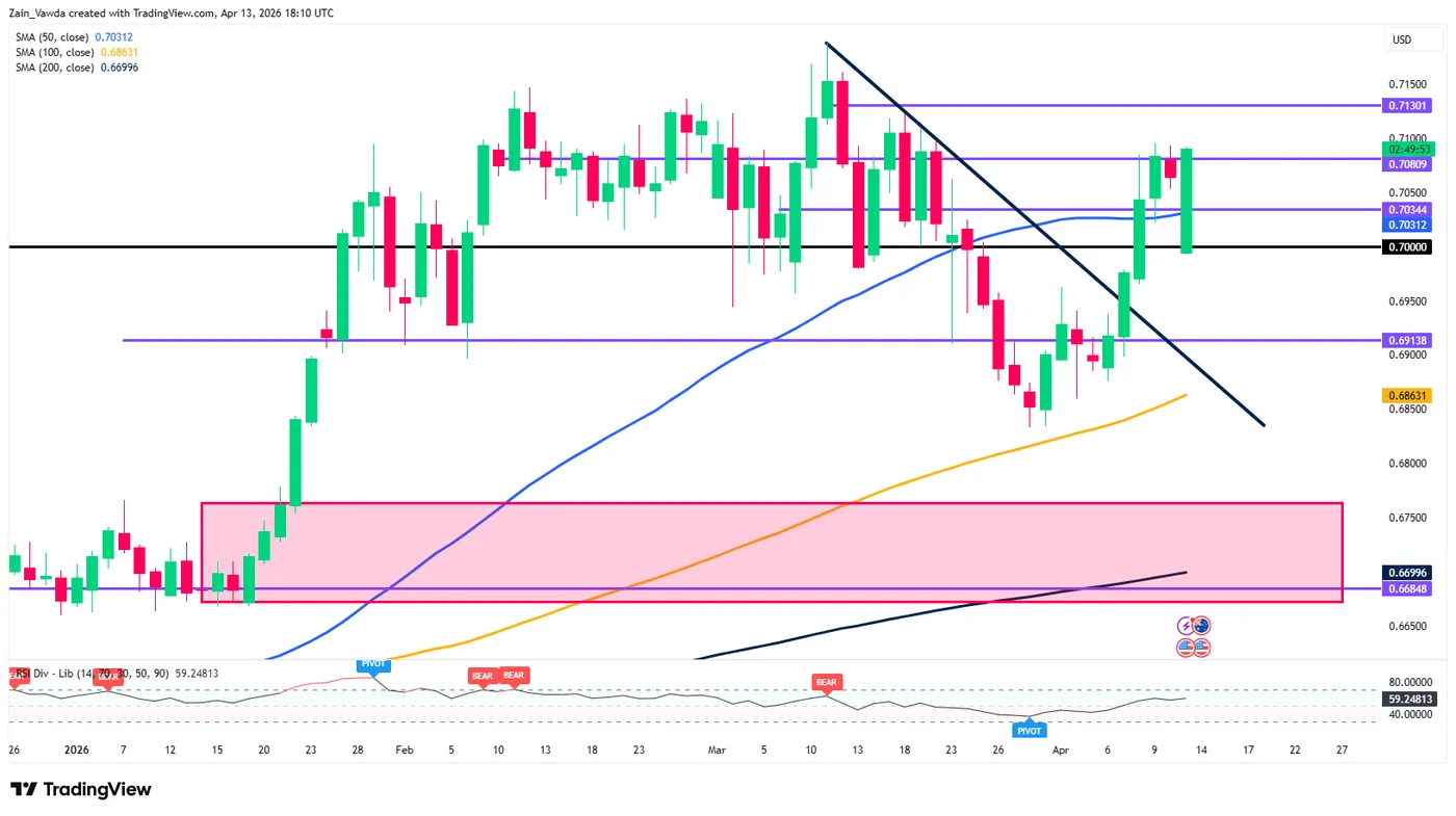 AUD/USD Four-Hour Chart, April 13, 2026