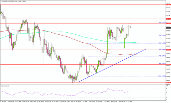 - AUD/USD started a fresh increase above 0.7000.
