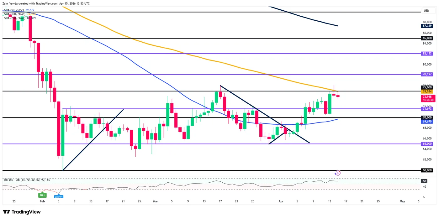Bitcoin (BTC/USD) is currently locked in a tug-of-war at the psychological 75000 handle. After a volatile start to the month, the premier cryptocurrency has carved out a clear recovery path, though the technical indicators suggest the journey higher may require a brief pitstop.