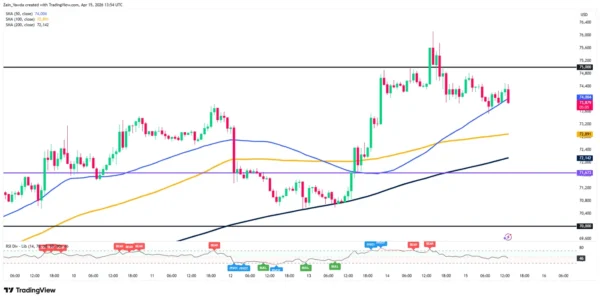 Bitcoin (BTC/USD) Four-Hour Chart, April 15, 2026