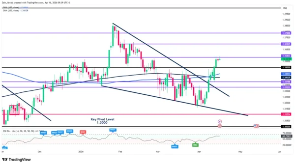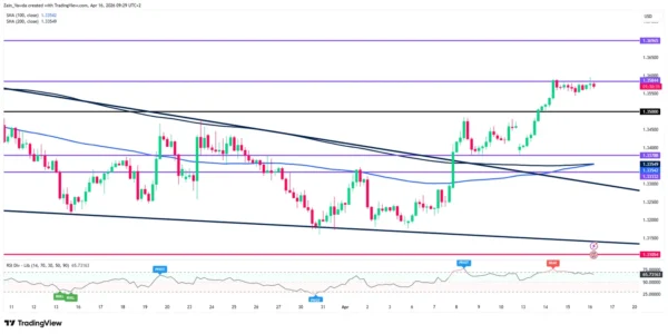 The daily timeframe provides the most compelling evidence of a medium-term trend shift. After months of being capped by a persistent descending trendline (dark navy), GBP/USD staged a clean breakout in early April.
