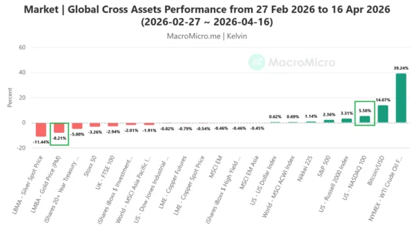 Fig. 1: Global cross-assets performances from 27 Feb 2026 to 16 Apr 2026 (Source: MacroMicro).