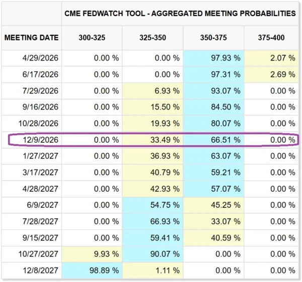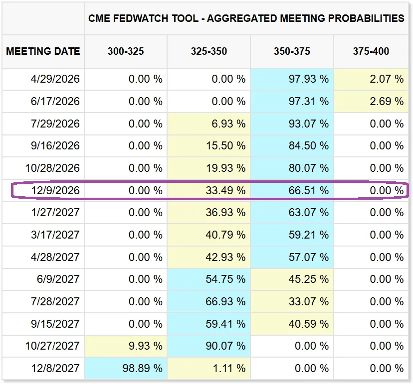 Fig. 2: CME FedWatch tool aggregated FOMC meeting probabilities as of 17 Apr 2026 (Source: CME FedWatch tool).