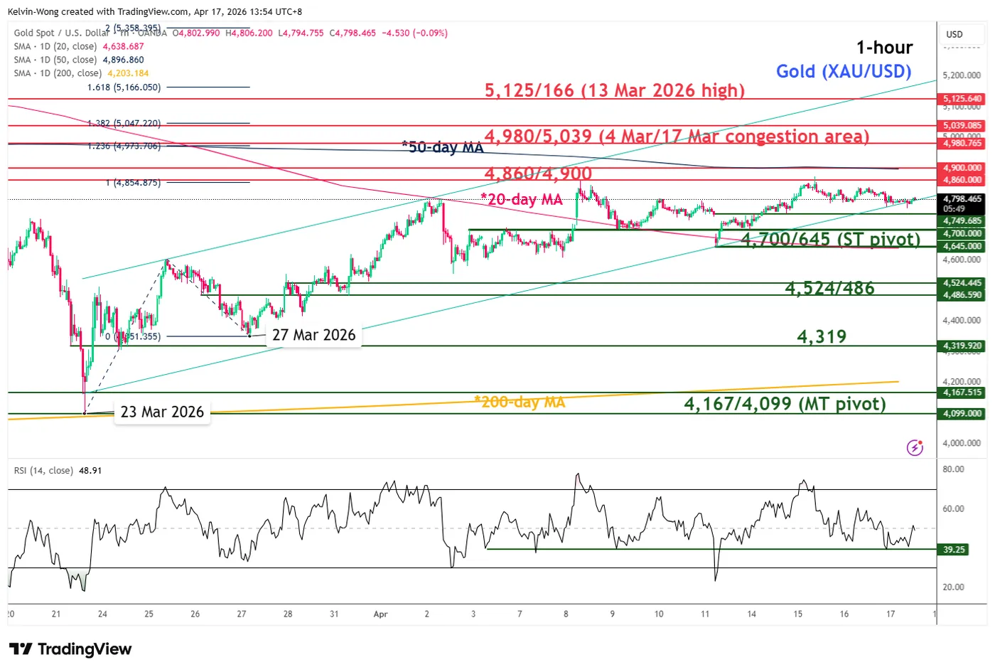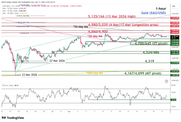 Gold (XAU/USD) has held steady on Friday, 17 April 2026, during the Asian session with a minuscule intraday gain of 0.2% to trade at $4,800 at this time of writing.