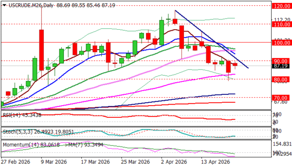 Although the overall picture has been darkened by the latest developments that raise fears of fresh escalation (that may have strong negative impact, not only on the region, but the global economy) technical picture on daily chart is expected to remain bearishly aligned while the price stays below $90 barrier (which caps upticks for the fourth consecutive session).
