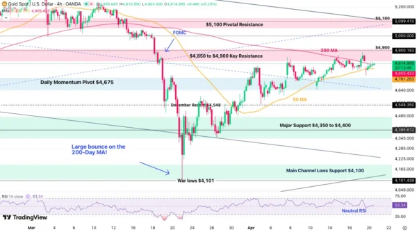 - $4,850 to $4,900 Major Resistance (bullish above)