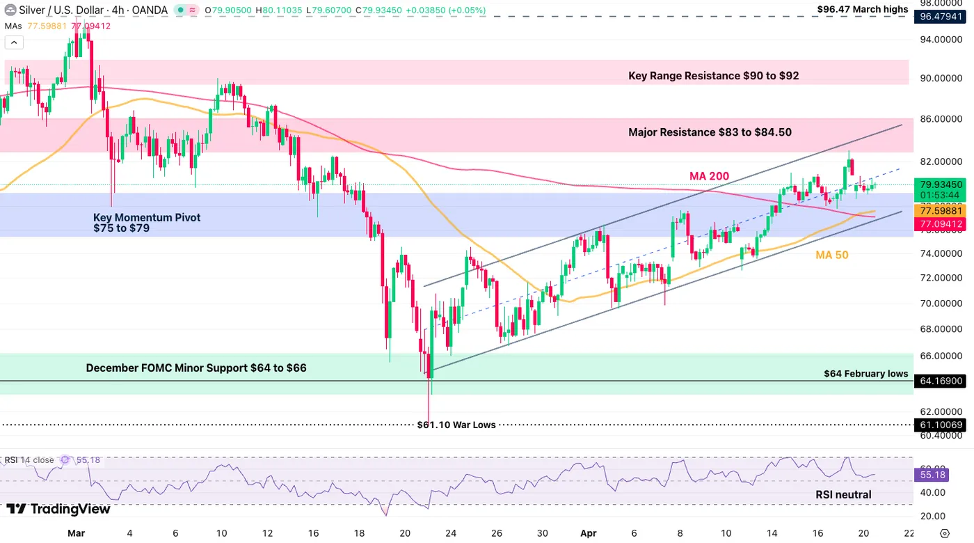 Silver (XAG/USD) 4H Chart, April 20, 2026 – Source: TradingView