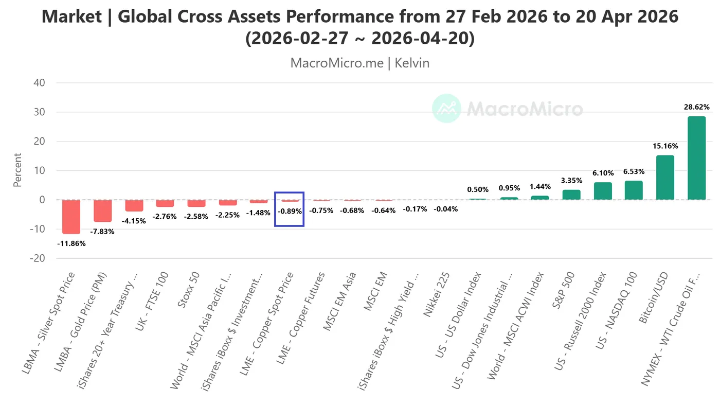 Fig. 1: Global Cross Assets Performance from 27 Feb 2026 to 20 Apr 2026 (Source: MacroMicro).