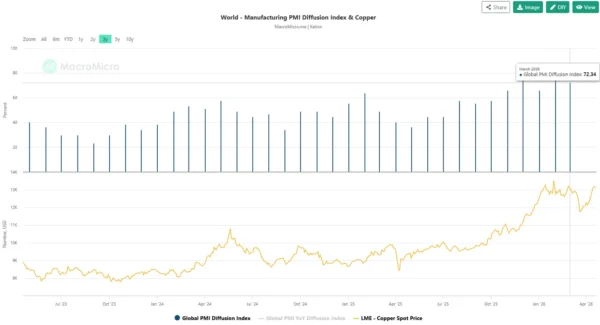 Fig. 2: Global Manufacturing PMI Diffusion Index as of March 2026 (Source: MacroMicro).
