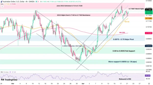 AUD/USD 4H Chart, April 21, 2026 – Source: TradingView