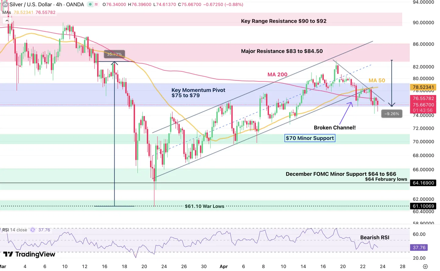 Silver 4H Chart, April 23, 2026 – Source: TradingView