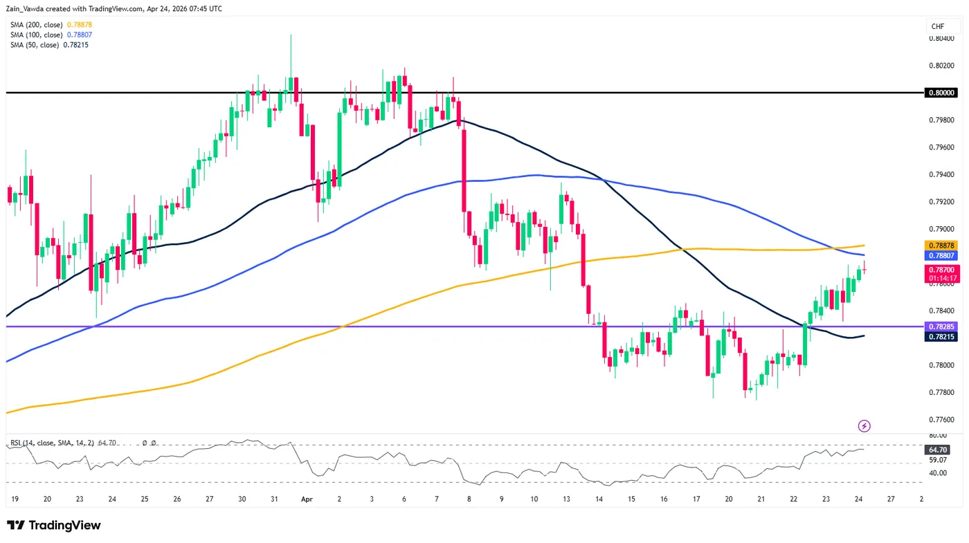 USD/CHF Four-Hour Chart, April 24, 2026