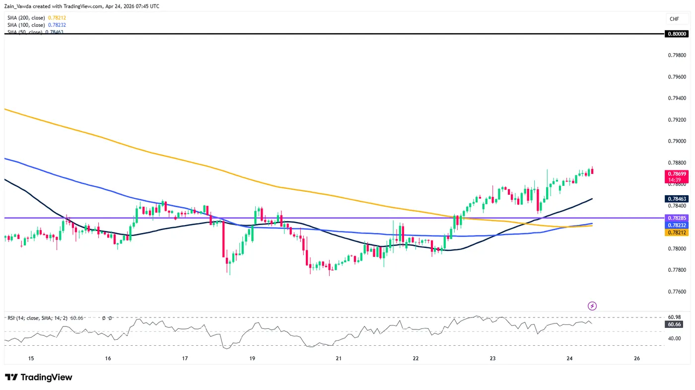 USD/CHF One-Hour Chart, April 24, 2026