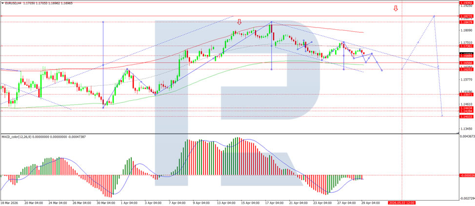 EUR/USD is slightly lower on Wednesday, trading with minimal movement around 1.1708. The market is preparing for a Federal Reserve meeting, which could be Jerome Powell’s last before his term ends in May.