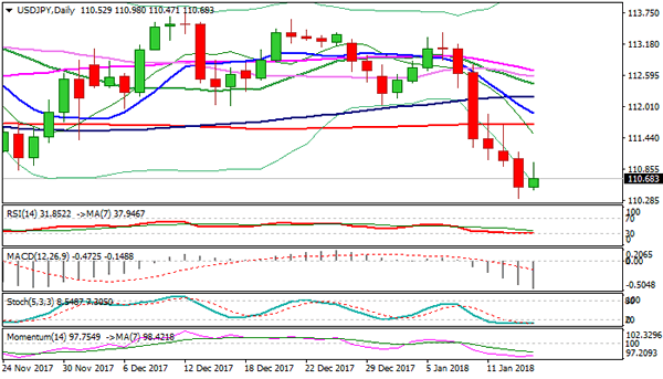 Recovery attempts were so far limited by falling hourly cloud and failed to sustain probes above first strong barrier at 110.83 (former key support, low of 27 Nov).
